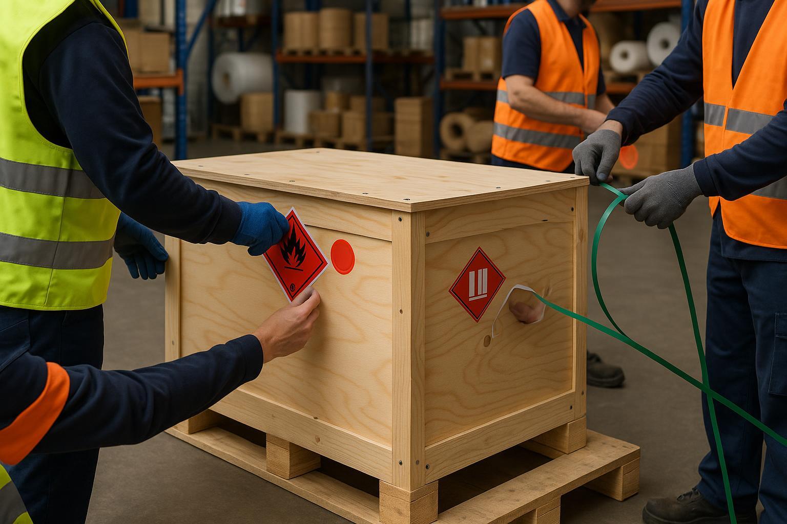 - Kennzeichnung & Papiere: Anbringen der vorgeschriebenen Gefahrgutetiketten, UN-Nummer, Handlinghinweise sowie Beifügung der Versanddokumente (SDS/ADR-Daten, Beförderungspapiere).